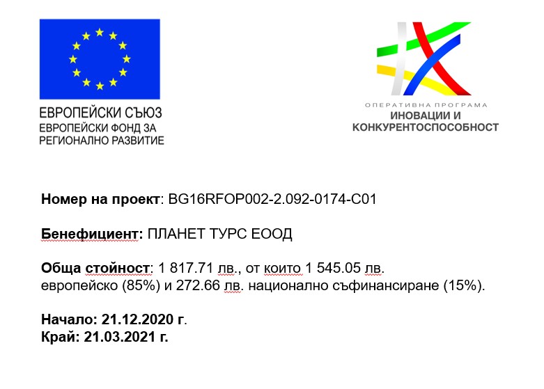 Планет Турс ЕООД е бенефициент по проект Подкрепа на предприятия, регистрирани по Закона за туризма като туроператор или туристически агент, за преодоляване на икономическите последствия от пандемията COVID-19.